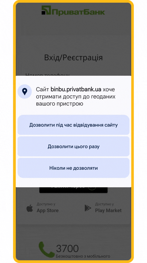 Під час проходження ідентифікації за допомогою BankID потрібно надати дозвіл на геолокацію.