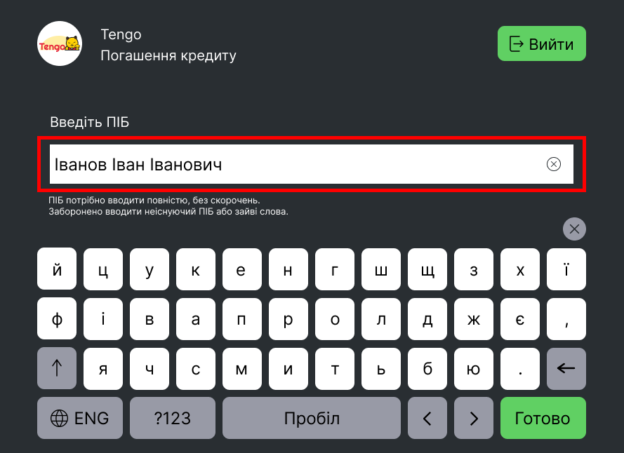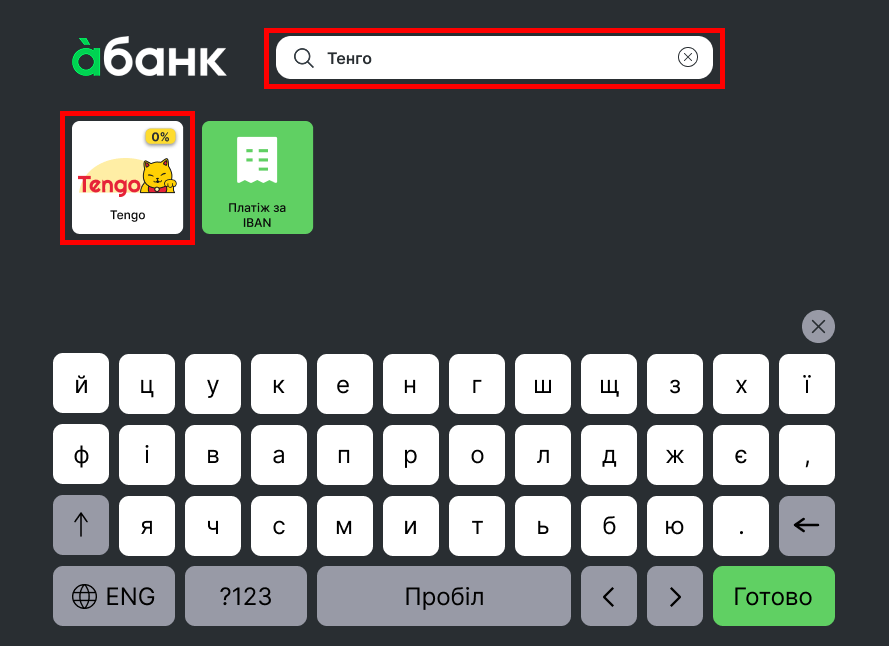 2 У пошуку введи "Тенго" та обери нас зі списку.